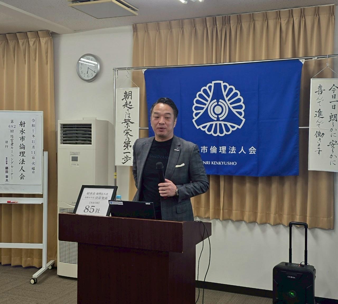 講和者は、高岡市倫理法人会 会員で塩谷建設株式会社 代表取締役社長の塩谷 洋平さ
