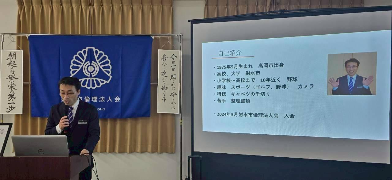 講和者は、射水市倫理法人会 幹事で株式会社 日本成工 取締役 5グループ長の中谷 秀一さんでした。
